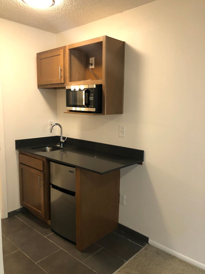SPACIOUS private room in a remodeled 2 Bed/1 Bath apartment with GRANITE countertops, STAINLESS STEEL appliances, MARBLE-tiled bathroom, and WOOD-LOOK floors. This room has a walk-in closet and a WET BAR/SINK.
