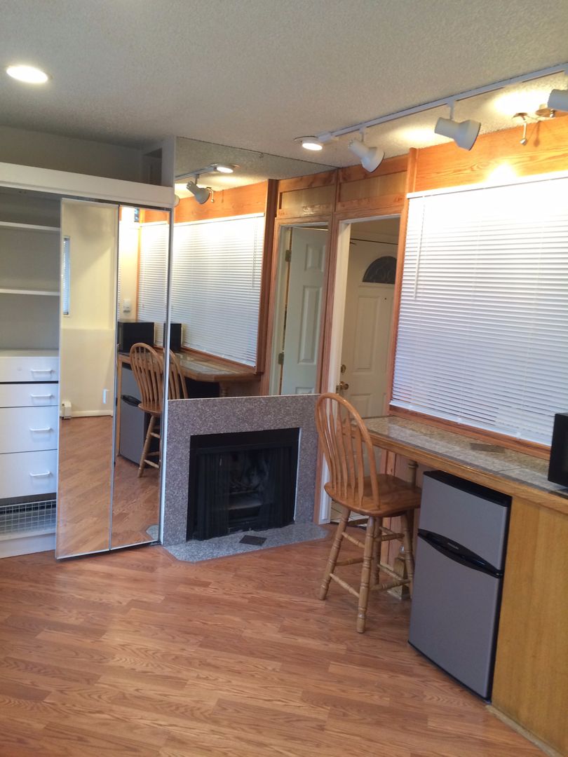 This private room with PRIVATE BATH in a 2 bedroom apartment features laminate wood floors, marble-tiled bathroom, a granite kitchen countertop, and a wood-burning fireplace. Mini-fridge and microwave in your room!