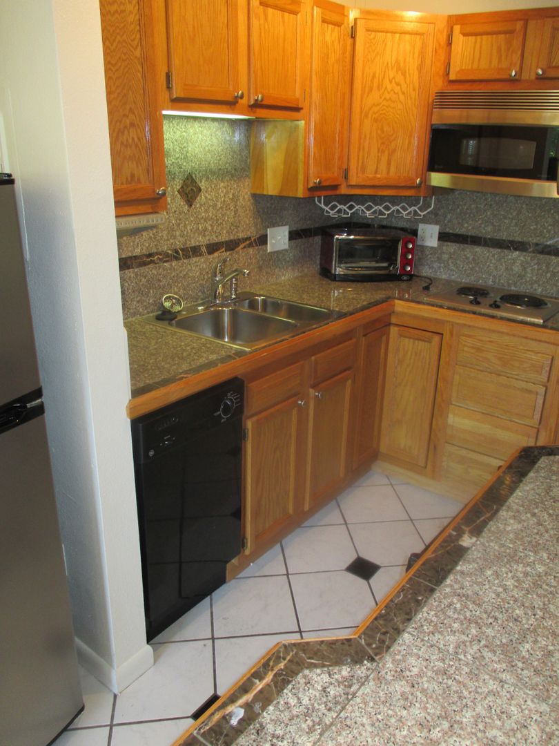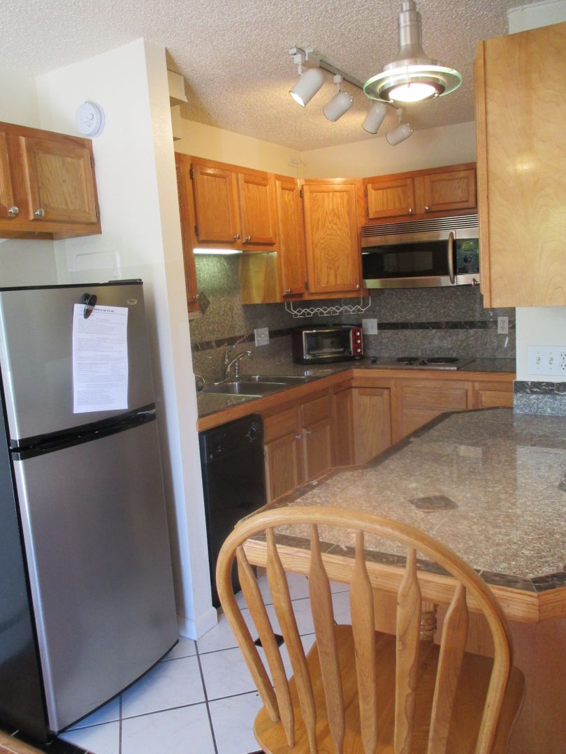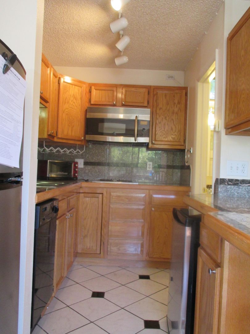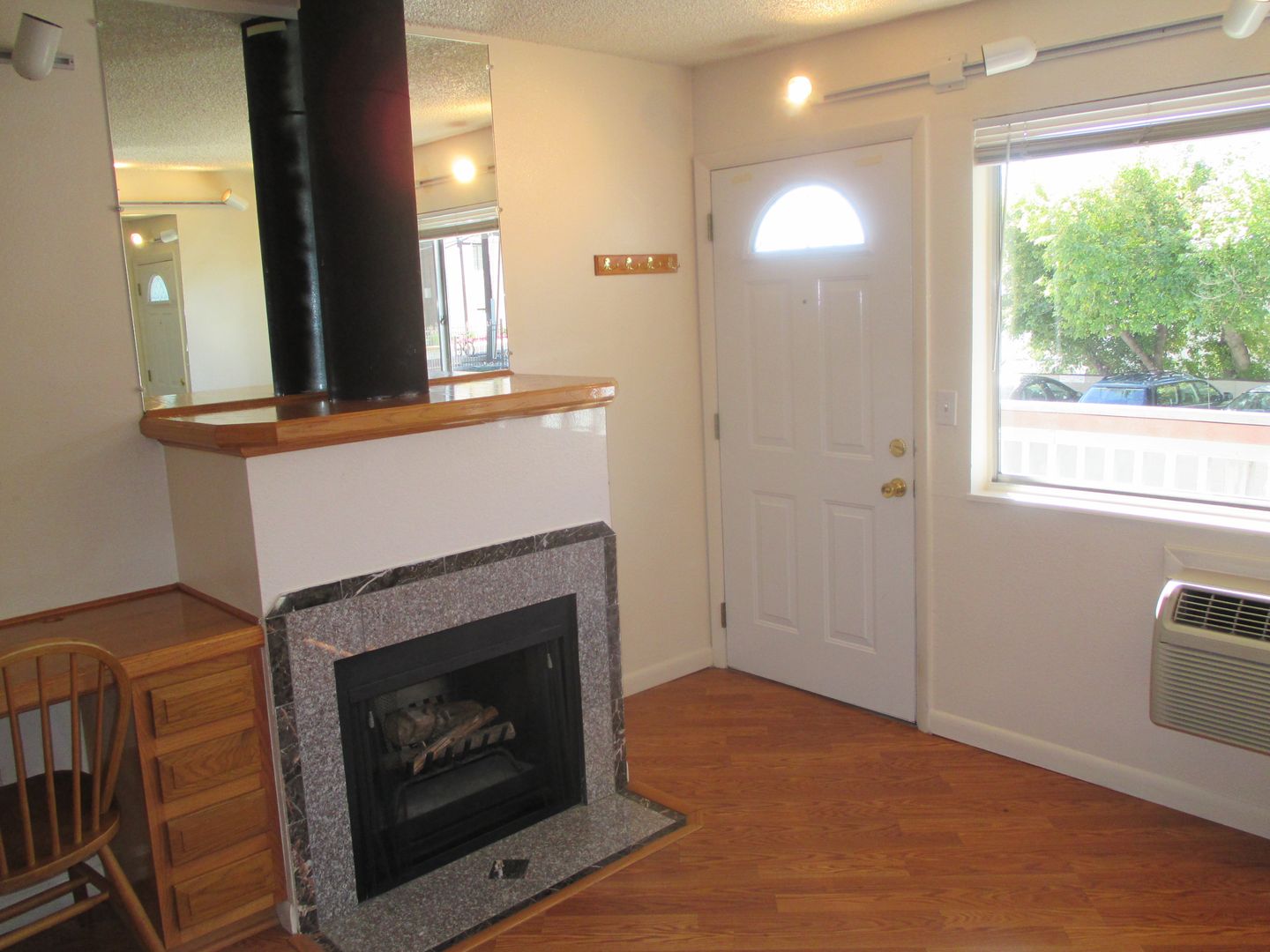 This charming studio is remodeled with granite countertops, laminate wood flooring, marble tile, track lighting and a wood-burning fireplace.