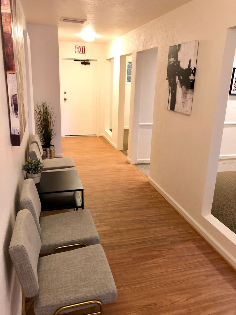 This suite is shared with a great mix of tenants! It has two entry doors, one from the main building lobby and one from the parking lot. It has been TOTALLY REMODELED with new paint, new lighting, new carpet and gut-remodeled bathrooms. As well as remodeled kitchenettes. HIGH-END finishes. QUARTZ counters. STONE tile.