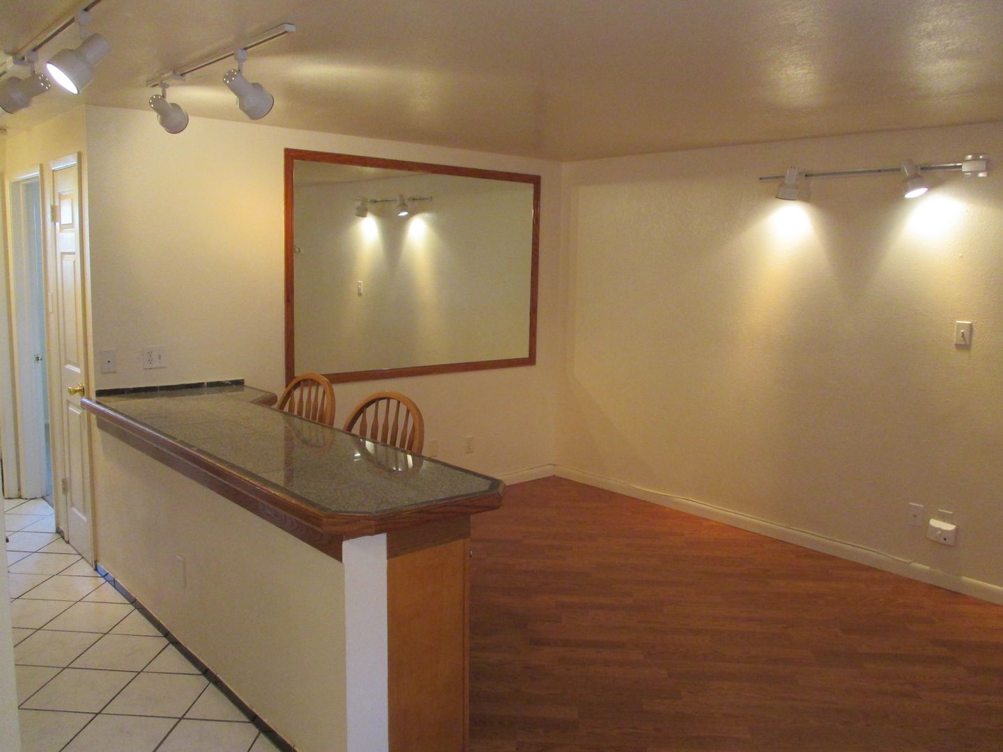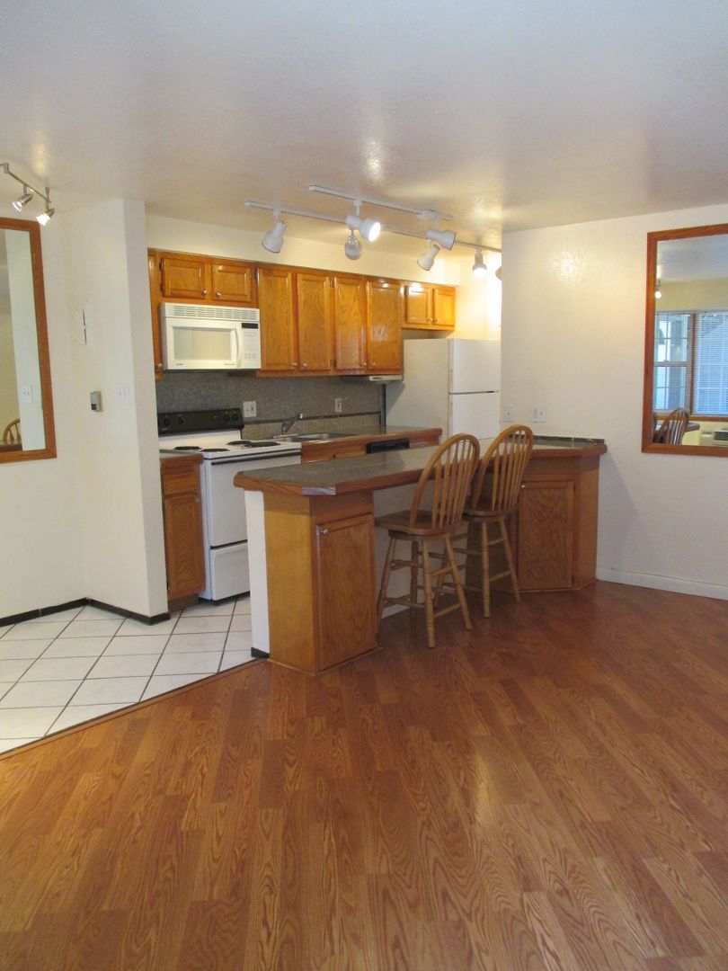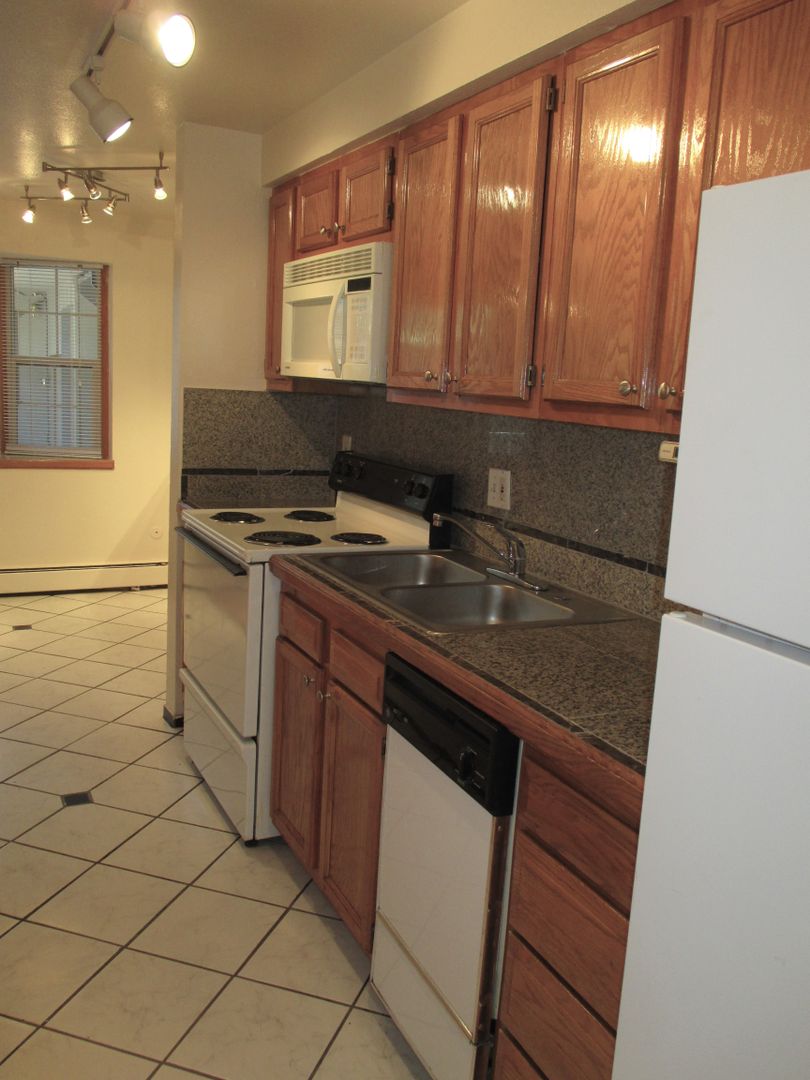 This 1 BD apartment has GRANITE countertops, MARBLE bathroom tiles, real OAK CABINETS, ceramic floor tiles, and laminate WOOD floors. It features an open-concept kitchen with an eat-in breakfast bar.