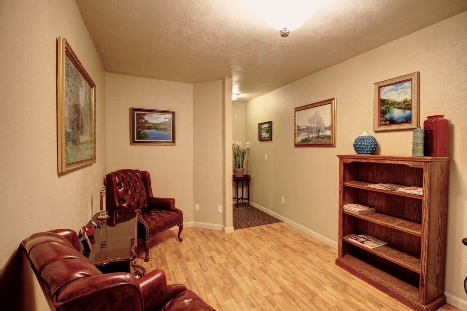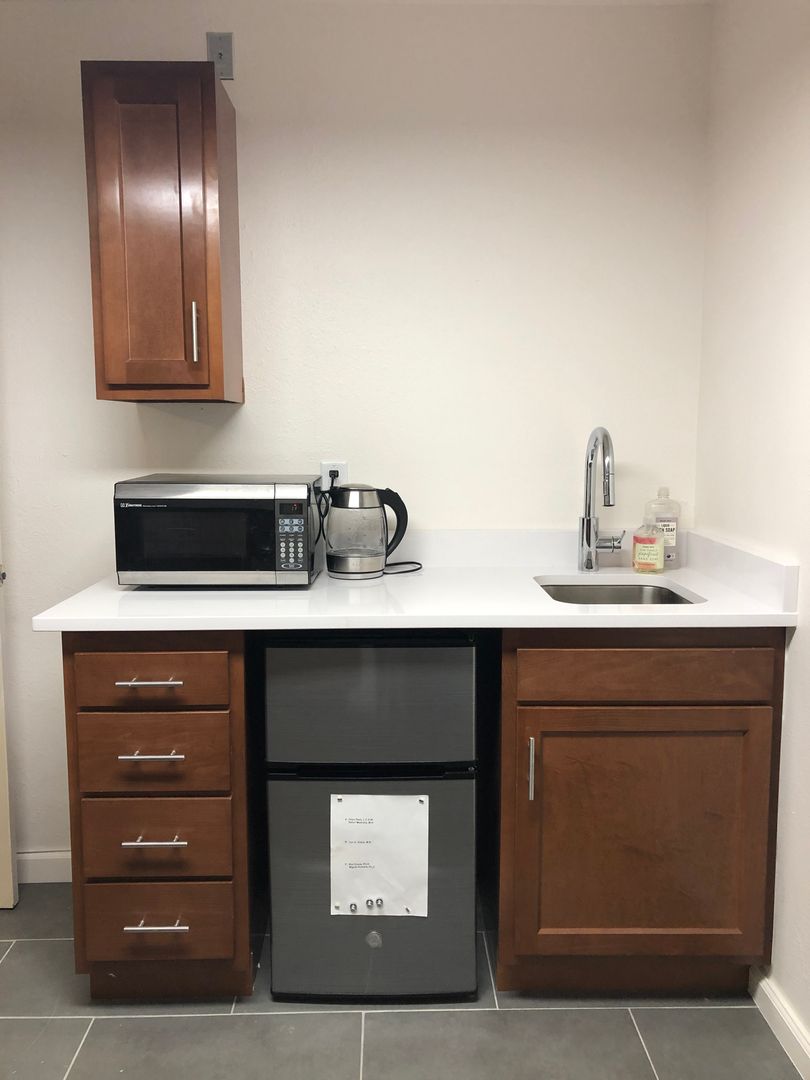 The suite has multiple offices with a shared common waiting area and a NEW kitchenette with high-end finishes!