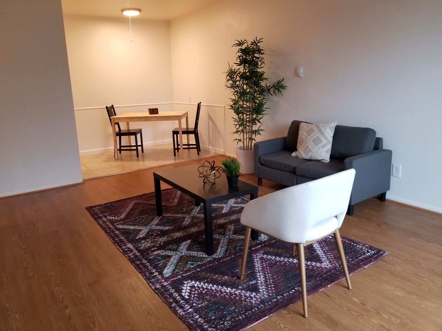 This 2 bedroom/1 bath apartment has BIG bedrooms, a REMODELED bathroom, laminate WOOD flooring, and a private BALCONY. TOP FLOOR apartment so no one above you!