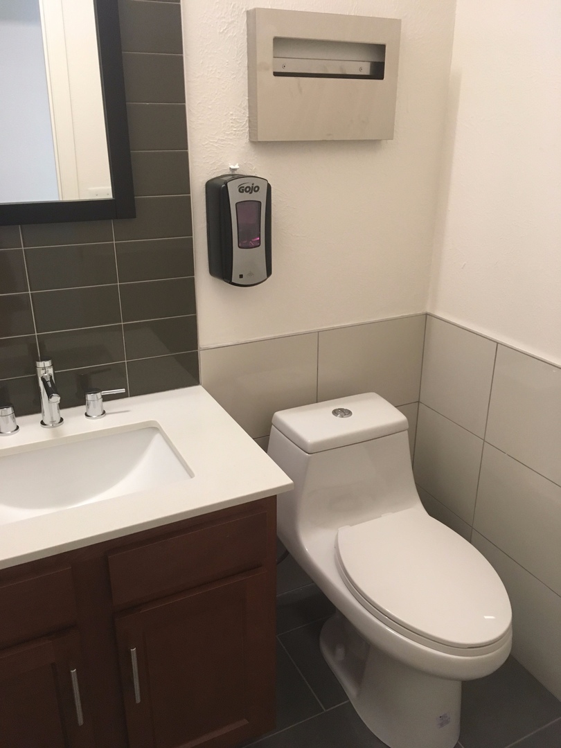This suite has multiple offices (some with balconies) a large, remodeled bathroom, a reception area and kitchenette. This suite also has two entry doors, one from the main building lobby and one from the parking lot. TOTALLY REMODELED with new paint, new lighting, new carpet and gut-remodeled bathrooms. As well as remodeled kitchenettes. HIGH-END finishes. QUARTZ counters. STONE tile.