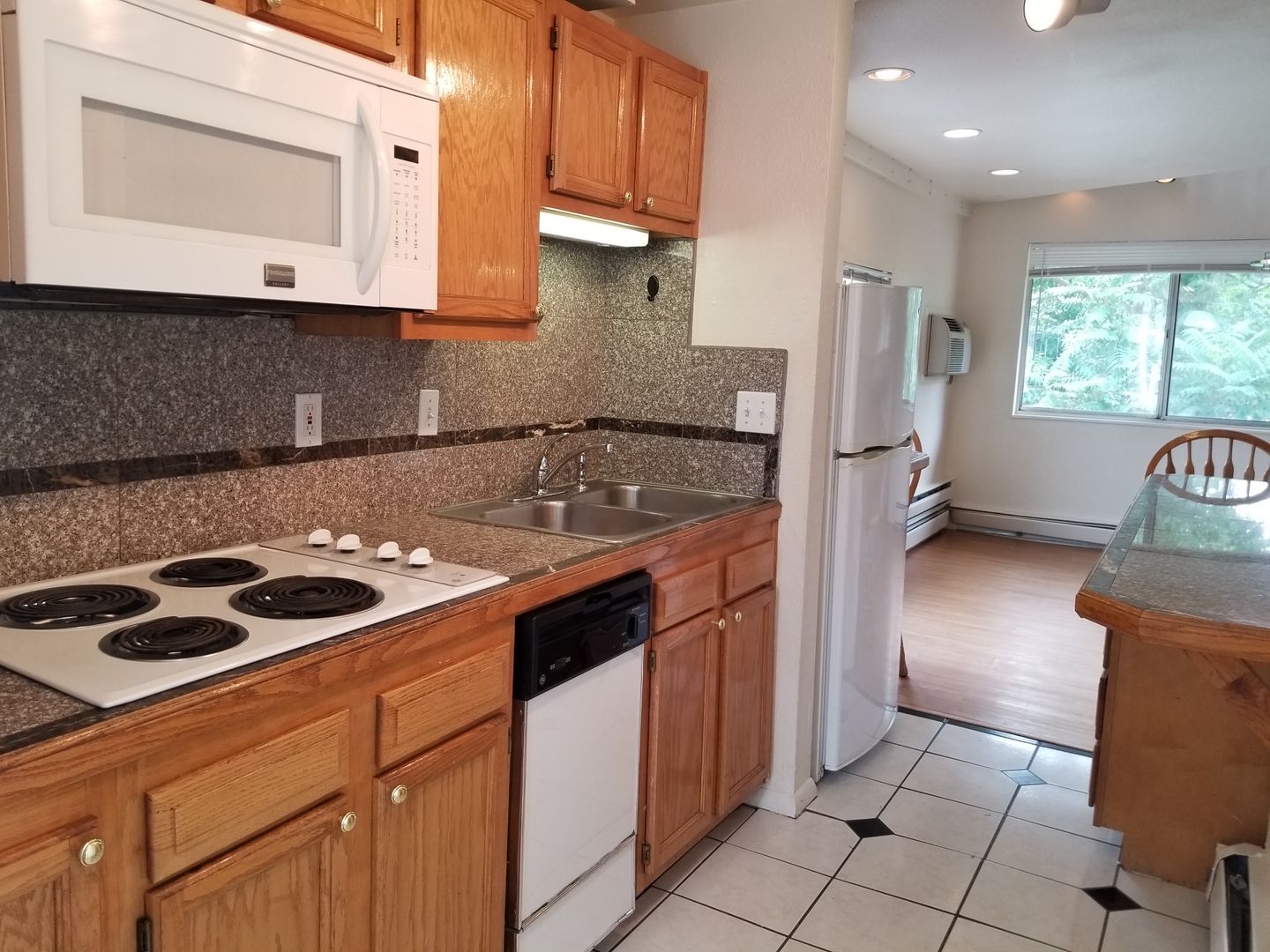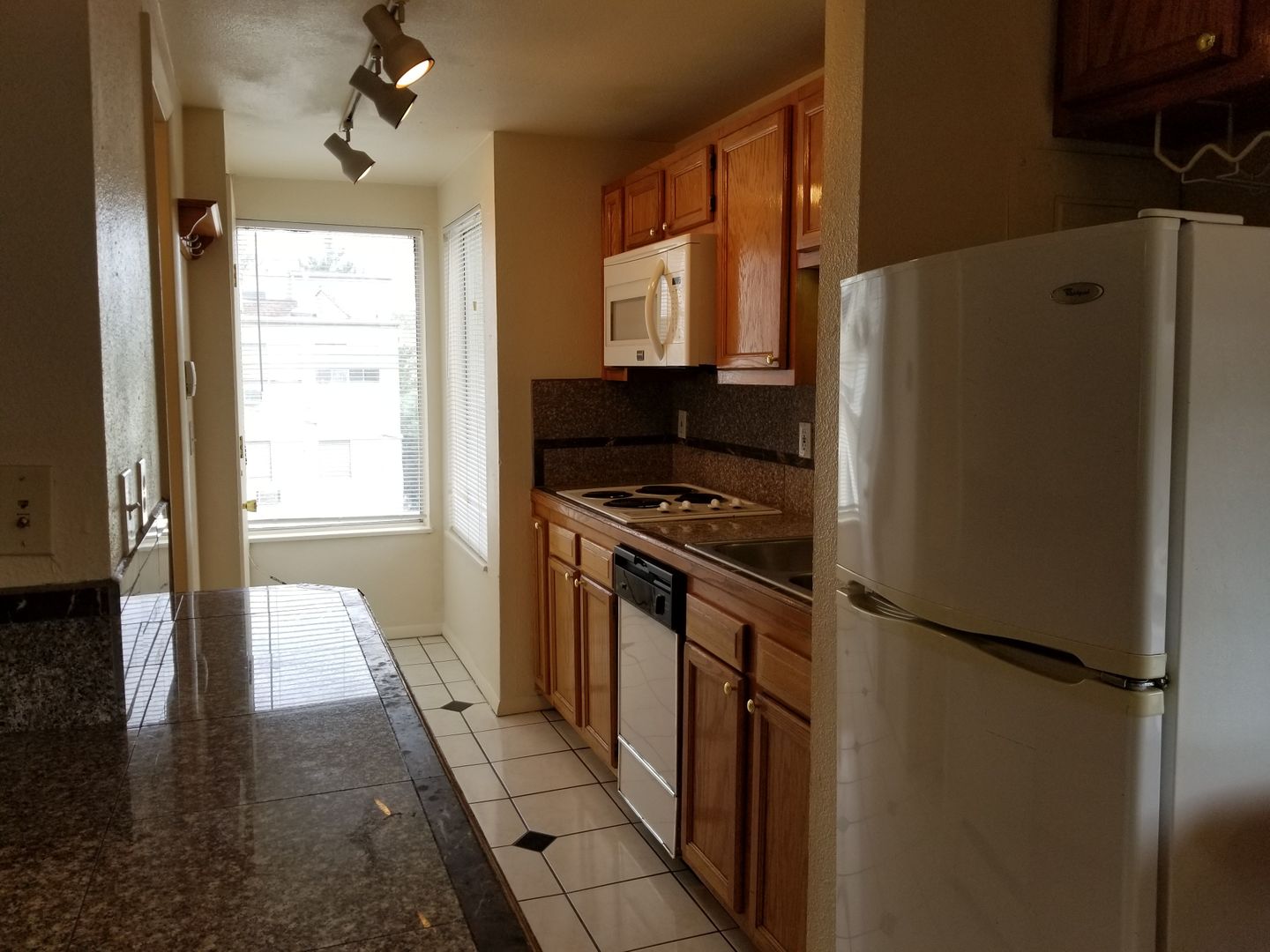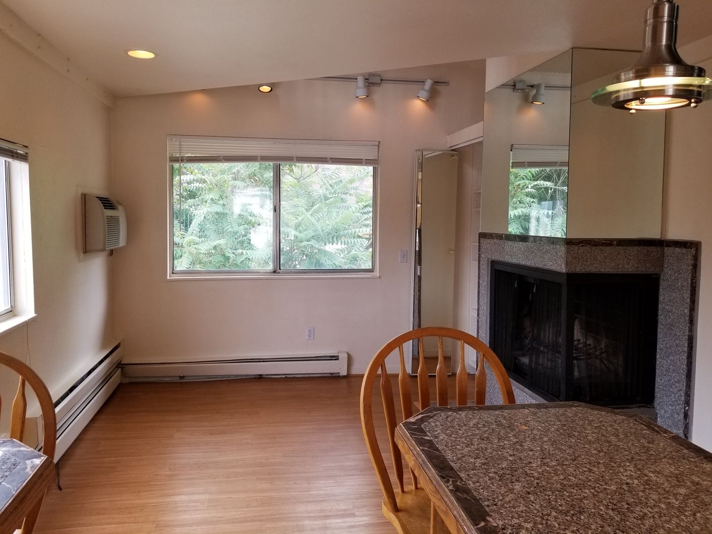 This apartment has been remodeled with beautiful granite countertops, oak cabinetry, mirrored accents, marble tile work, track lighting and a wood burning fireplace. The community has on-site, 24-hour laundry, FREE off-street parking and a seasonal pool.
