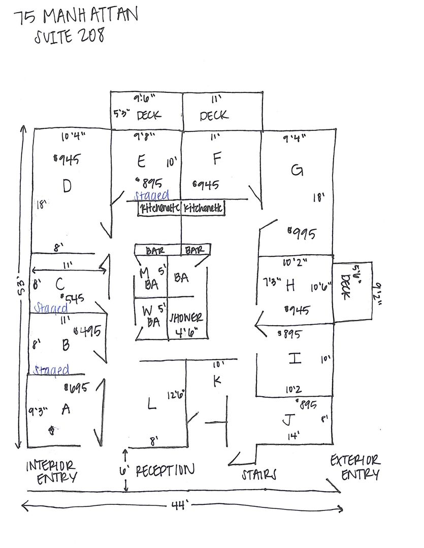 This suite is shared with a great mix of tenants! It has two entry doors, one from the main building lobby and one from the parking lot. It has been TOTALLY REMODELED with new paint, new lighting, new carpet and gut-remodeled bathrooms. As well as remodeled kitchenettes. HIGH-END finishes. QUARTZ counters. STONE tile.
