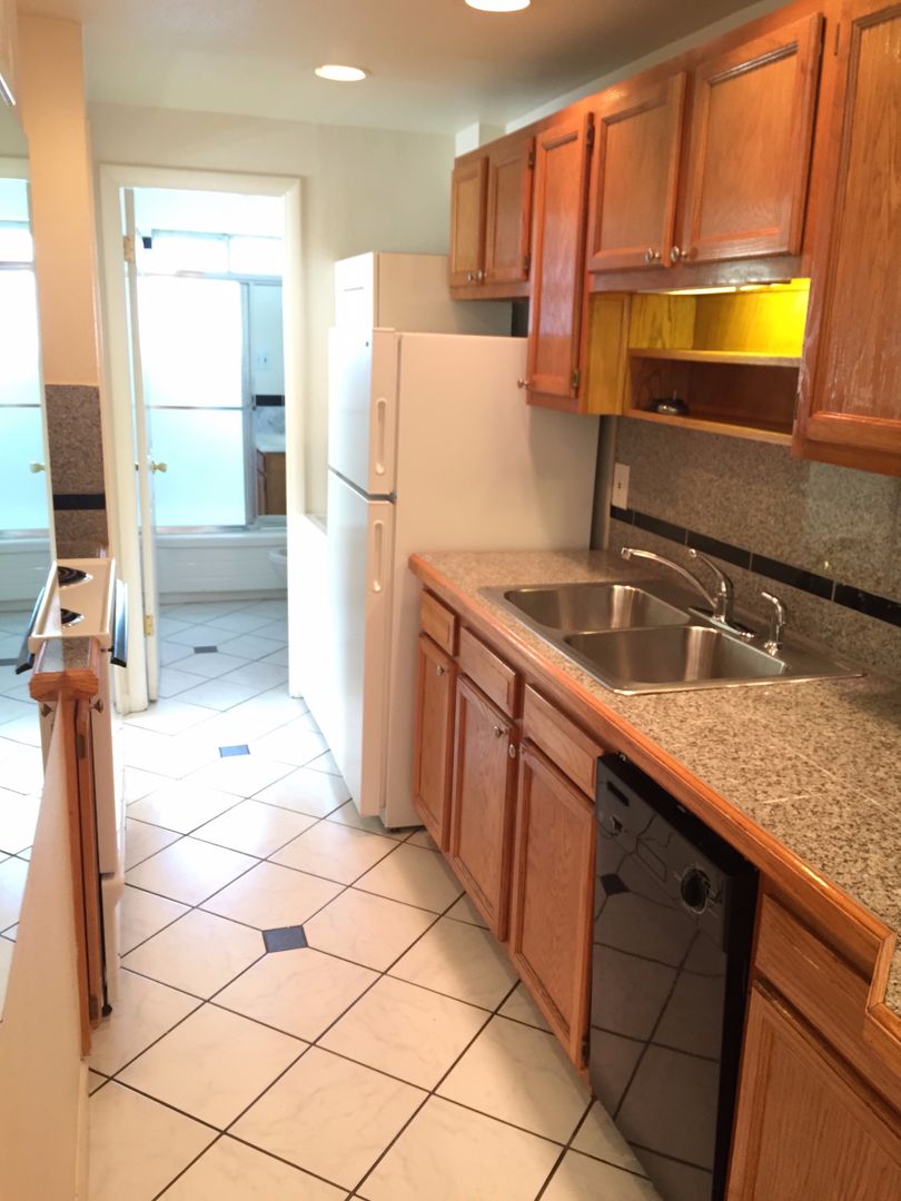 Top floor 2 bedroom/1 bath with GRANITE counters, laminate WOOD floors, ceramic tiles, MARBLE bathroom finishes, OAK kitchen cabinets, and a PRIVATE BALCONY. WASHER/DRYER in unit!