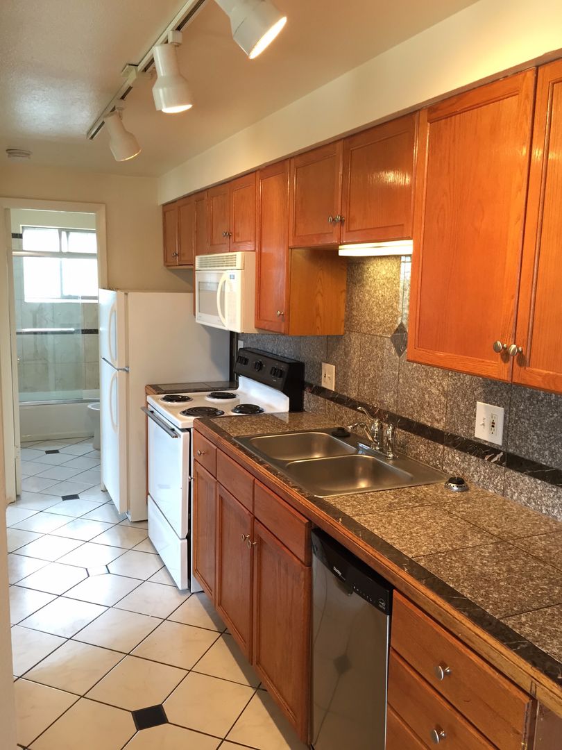 Top floor 2 BD/1 BA with GRANITE counters, ceramic floor tiles, OAK kitchen cabinets, WOOD-LOOK floors. Bedrooms don't share walls with other apartments!