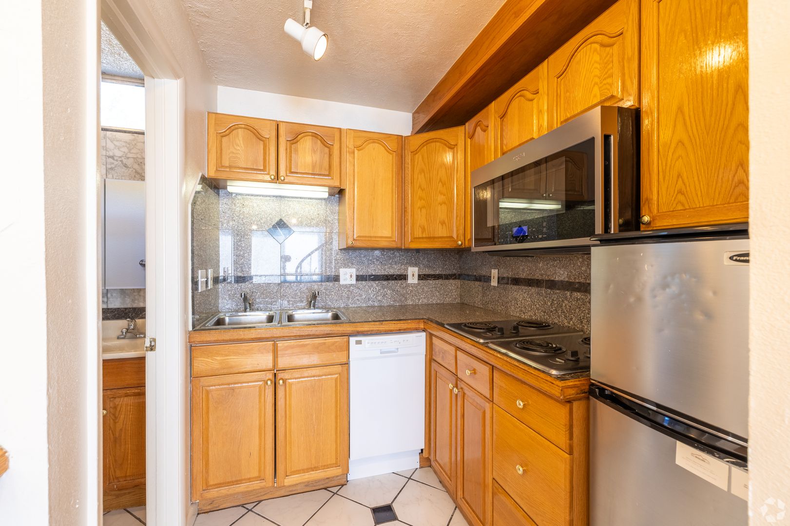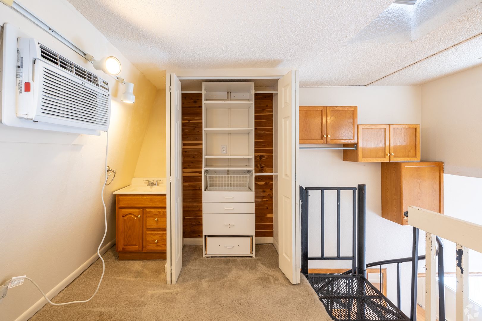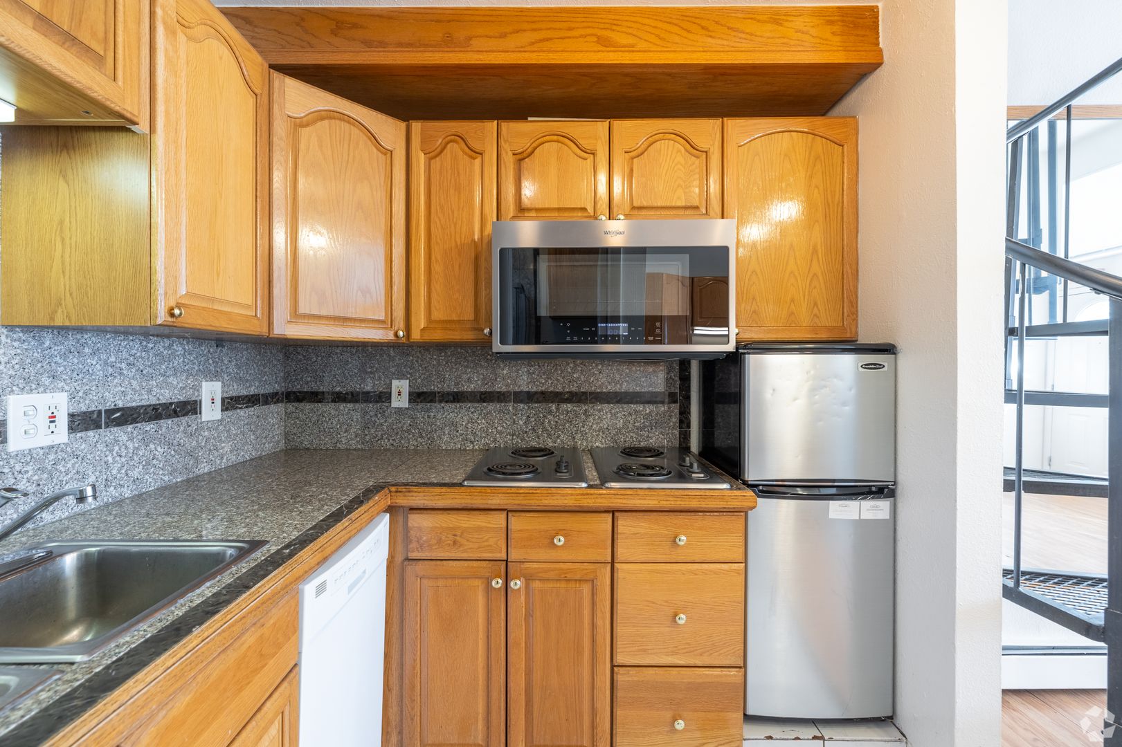 CHARMING studio with LOFT in the HEART of Boulder. This apartment features granite counters, OAK cabinets, MARBLE bathroom details, WOOD BURNING FIREPLACE, efficiency kitchen, SPIRAL STAIRCASE, and lots of light!