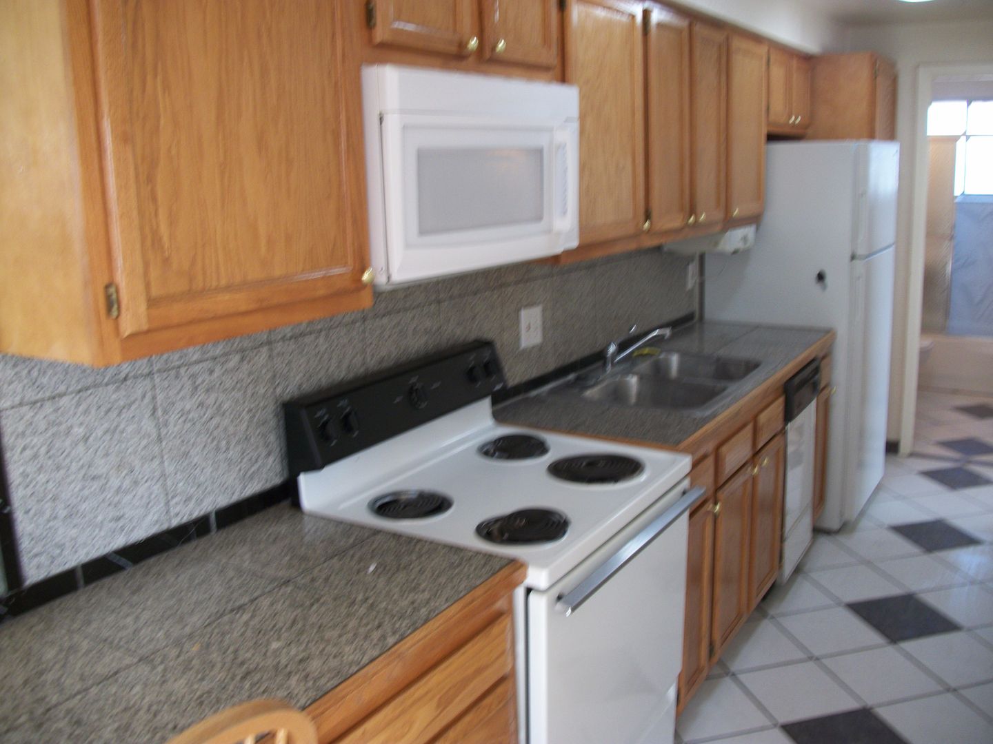 This 2 bedroom/1 bath features GRANITE counters, CERAMIC floor tiles, OAK kitchen cabinets, and WOOD-LOOK floors. The bedrooms don't share walls with other apartments and it's on the TOP FLOOR so NO ONE ABOVE YOU!
